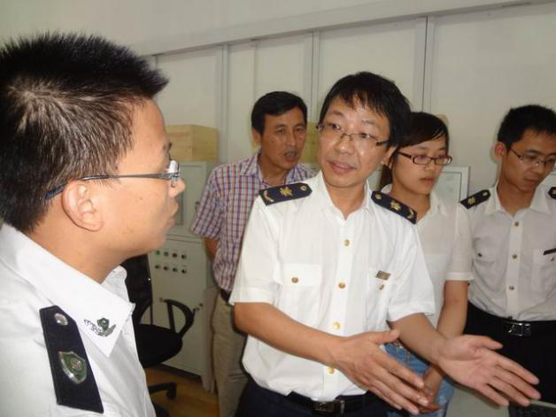 在监控室检验检疫局潘处长介绍疫木板材热处理的远程监管措施和办法。